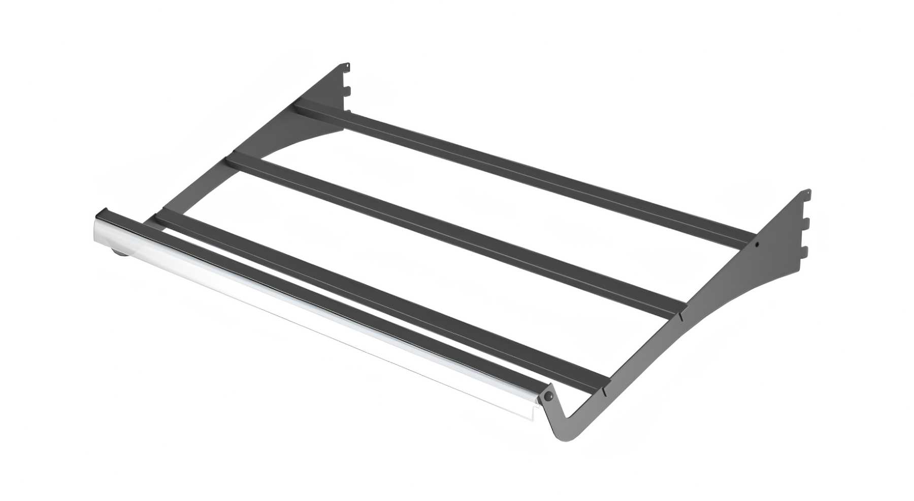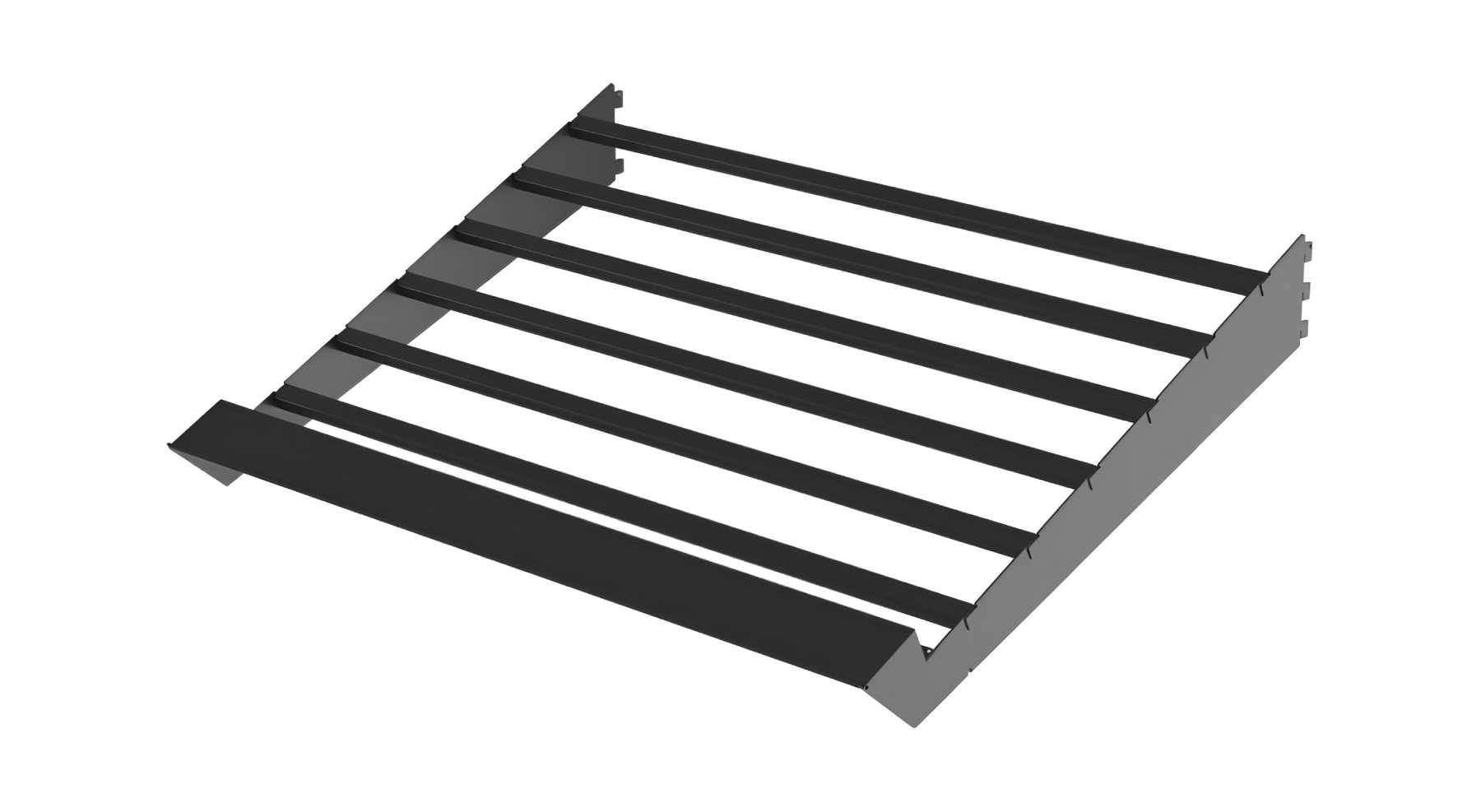 Αξεσουάρ ραφιών μαναβικής με μεταλλικές βάσεις στήριξης τελάρων για φρούτα και λαχανικά. Τοποθετούνται πάνω σε ράφια ή γόνδολες μαναβικής, προσφέροντας σταθερότητα, σωστή κλίση και ευελιξία στη διαμόρφωση του καταστήματος.