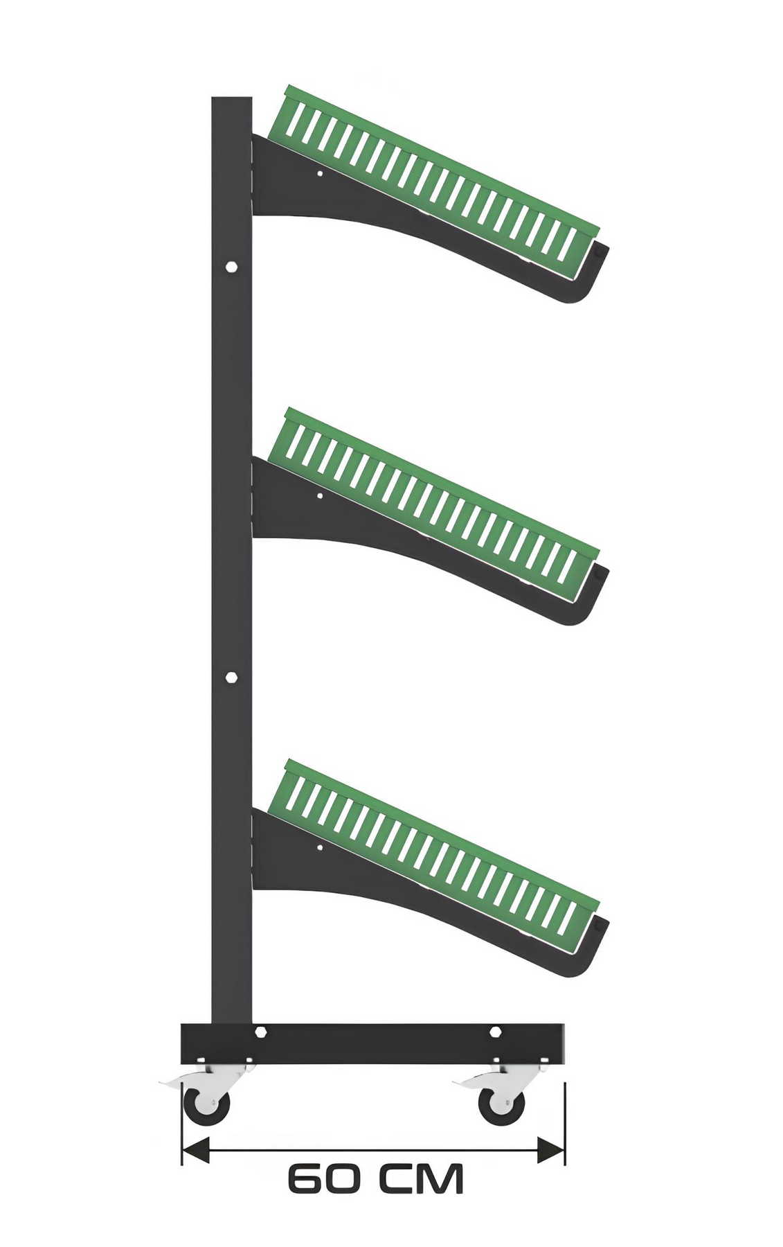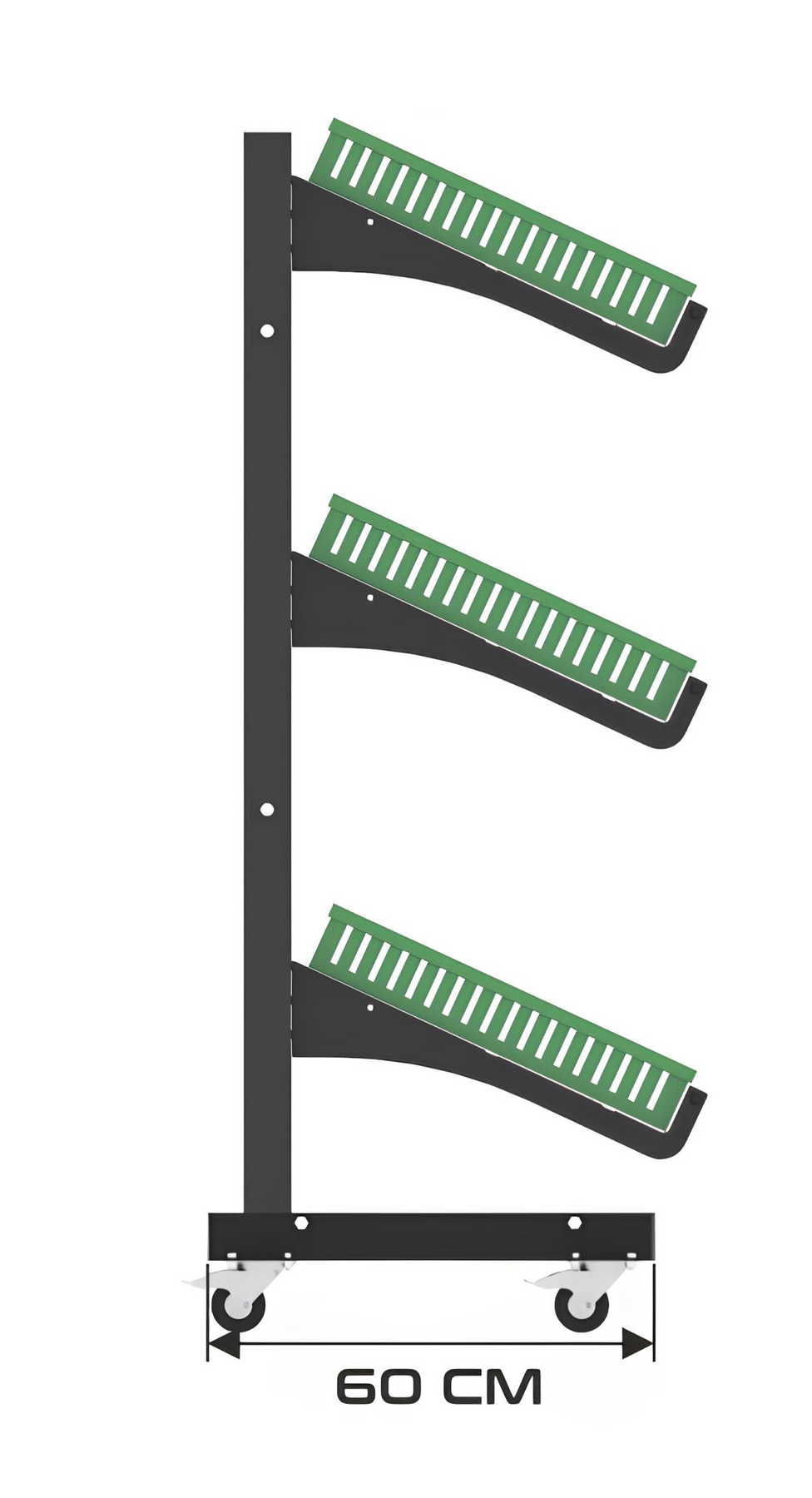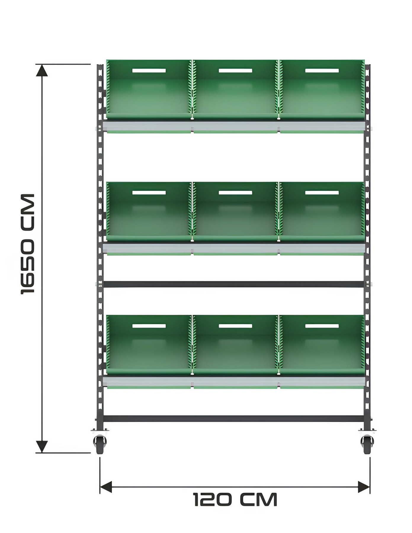 Η τροχήλατη βάση επιτρέπει άμεση μετακίνηση του stand χωρίς αποφόρτωση των προϊόντων, μειώνοντας τον χρόνο εργασίας και βελτιώνοντας τη λειτουργική ροή του καταστήματος.