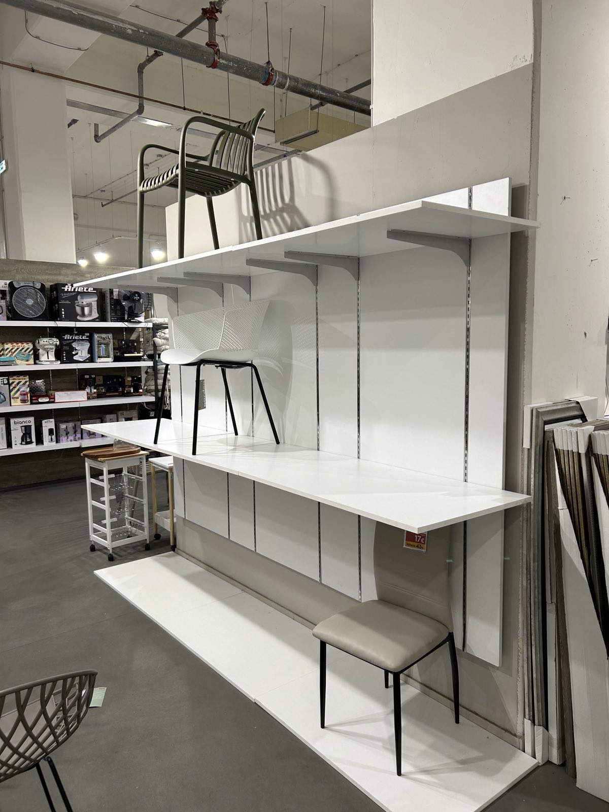 Το επιτοίχιο σύστημα ραφιών TA-0075 συνδυάζει μεταλλική ράγα υψηλής αντοχής με πλάτη από μελαμίνη, δημιουργώντας μία ολοκληρωμένη και αισθητικά αναβαθμισμένη λύση προβολής προϊόντων. Οι ράγες τοποθετούνται ανά 60 cm, εξασφαλίζοντας πλήρη σταθερότητα, ενώ τα πάνελ μελαμίνης παρεμβάλλονται ανάμεσα στις ράγες για ένα ενιαίο και κομψό αποτέλεσμα.