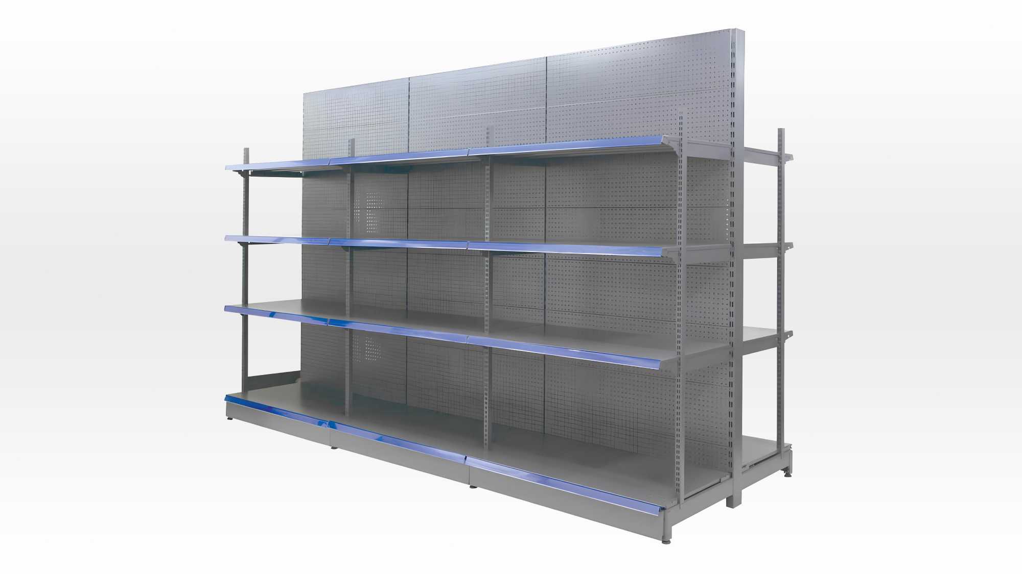 Κάθε ράφι στηρίζεται σε μεταλλικούς βραχίονες, οι οποίοι τοποθετούνται και στις δύο κολώνες για ενισχυμένη στήριξη, εξασφαλίζοντας ομοιόμορφη κατανομή βάρους και απολύτως ασφαλή χρήση. Η πλάτη του συστήματος μπορεί να είναι ίσια ή διάτρητη, δίνοντας τη δυνατότητα για αξιοποίηση γάντζων, καναλιών τιμών, διαχωριστικών, καπέλων αυτοκόλλητων και πλήθους άλλων αξεσουάρ προβολής.