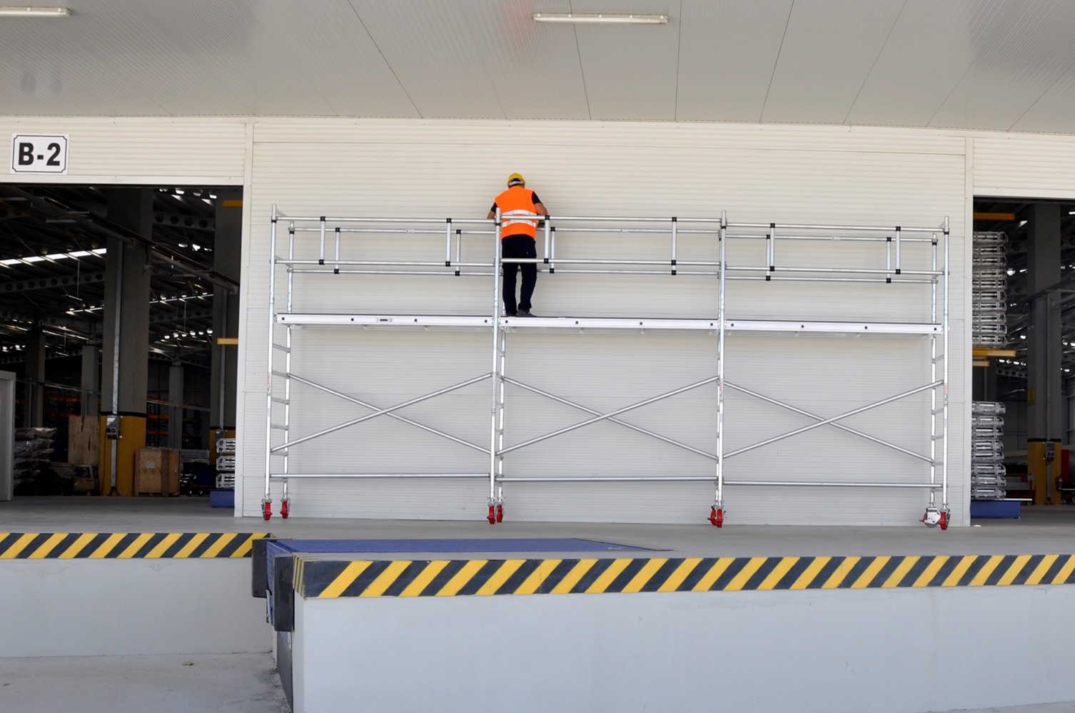 Εξάρτημα σύνδεσης σκαλωσιών για ασφαλή και στιβαρή διέλευση μεταξύ πλατφορμών σε επεκτάσιμες διατάξεις ProTube.