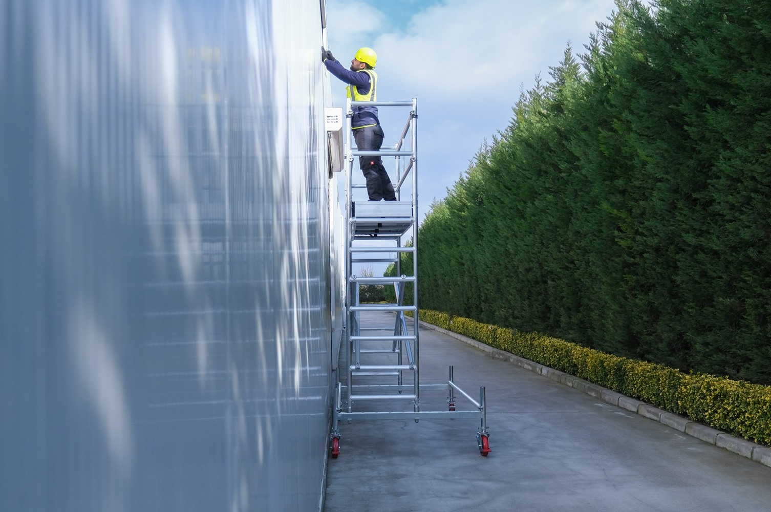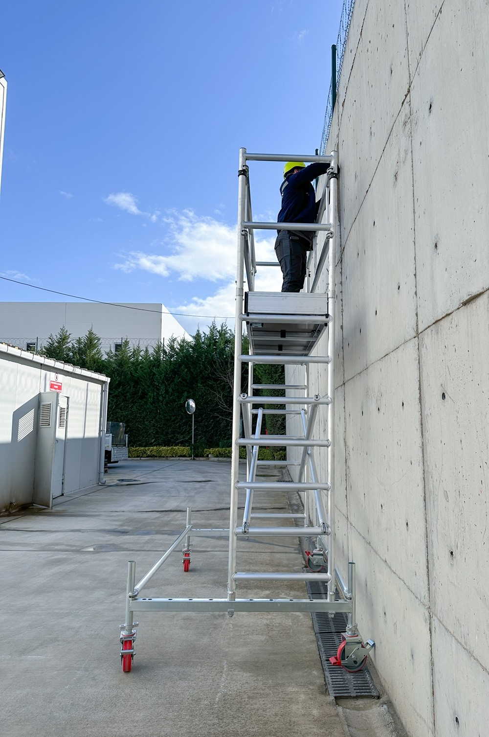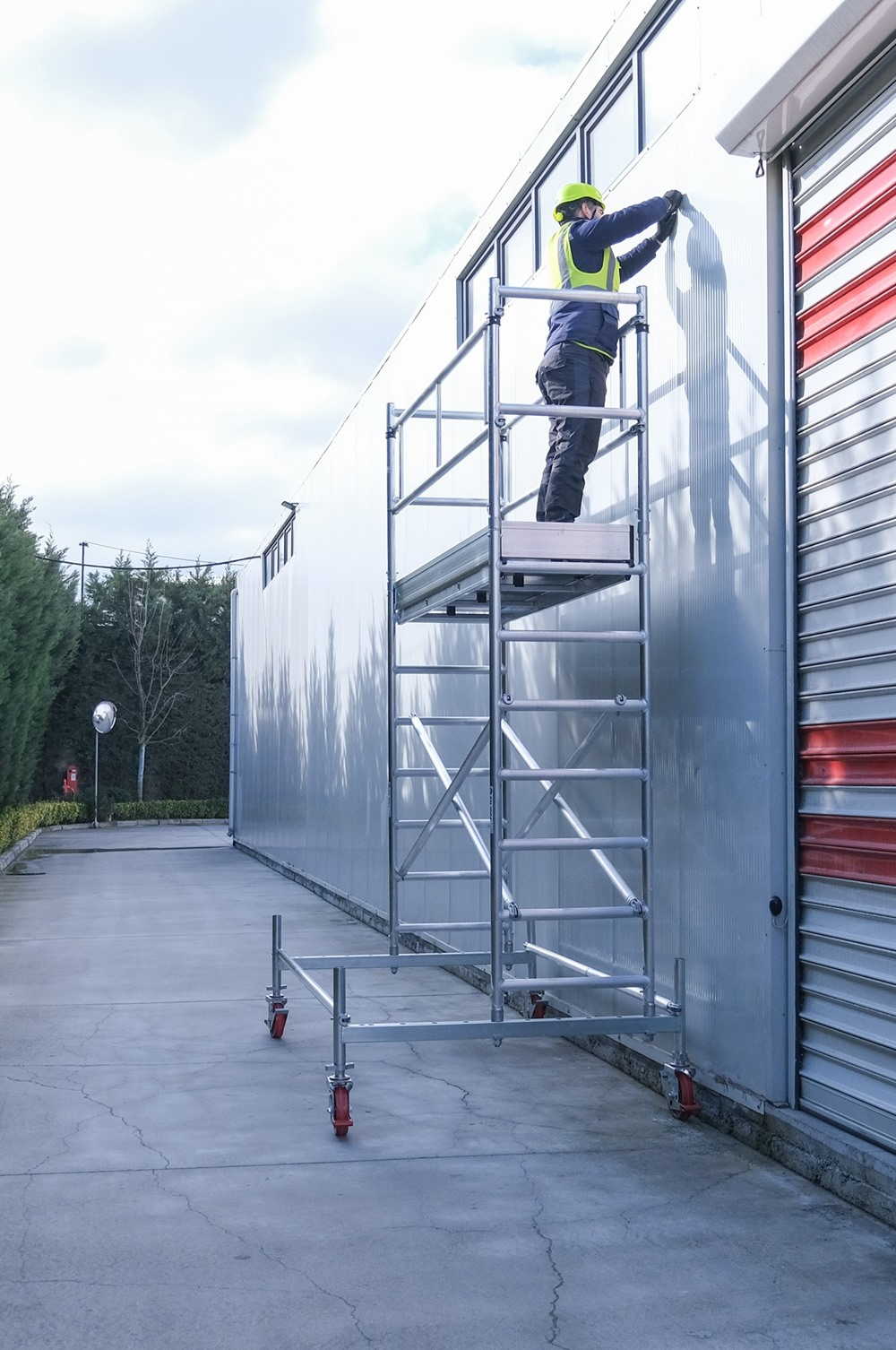 Ιδανική για εργοτάξια, εργασίες συντήρησης, επισκευές και γενικά για επαγγελματικές εφαρμογές σε ύψος όπου απαιτείται ευκολία μεταφοράς και σταθερότητα της σκαλωσιάς.