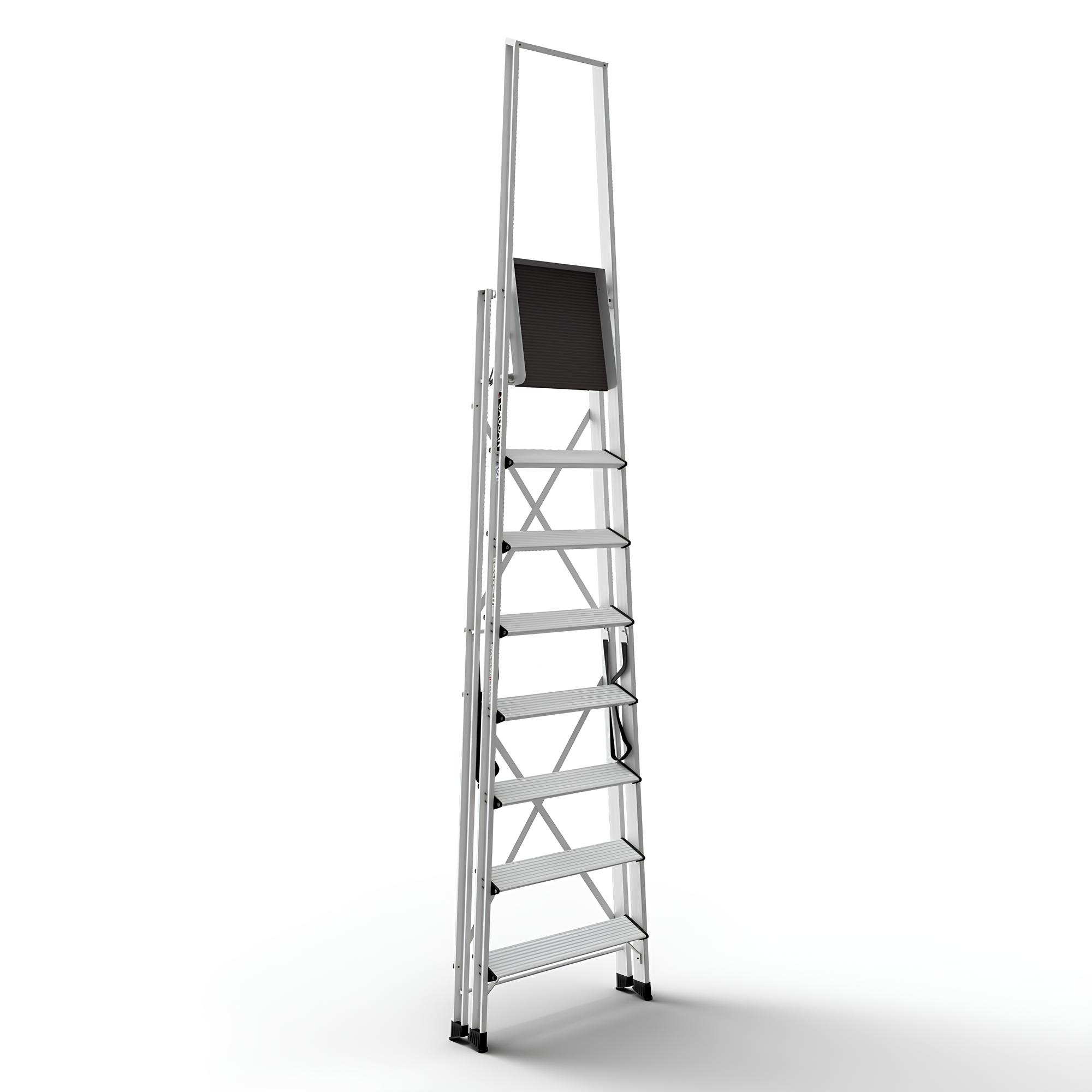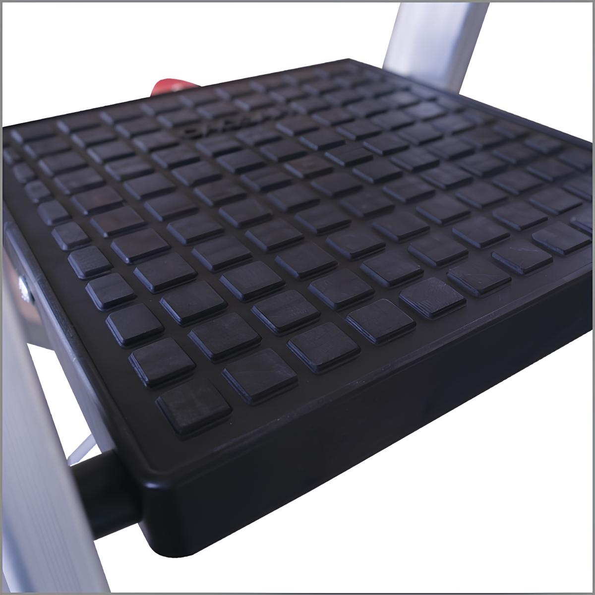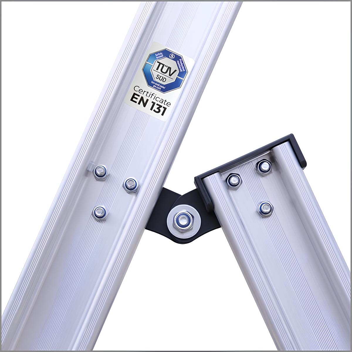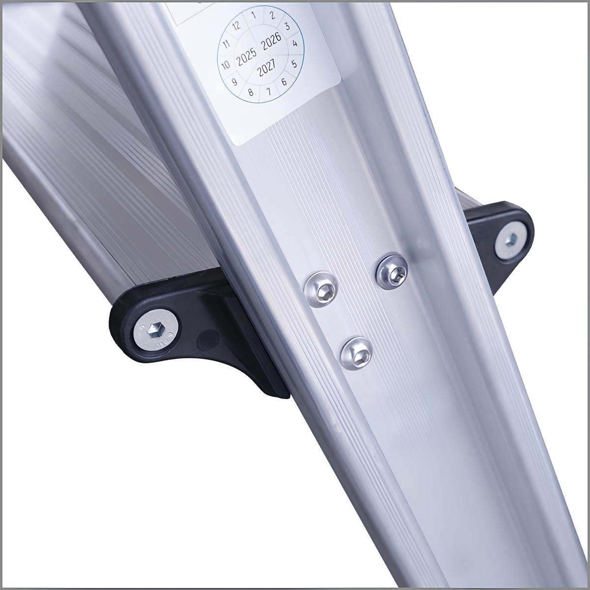 Η δομή αλουμινίου υψηλής ποιότητας παρέχει αντοχή σε έντονη καθημερινή χρήση. Η ενισχυμένη γεωμετρία πλαισίου αυξάνει την ακαμψία και τη συνολική σταθερότητα της σκάλας.
