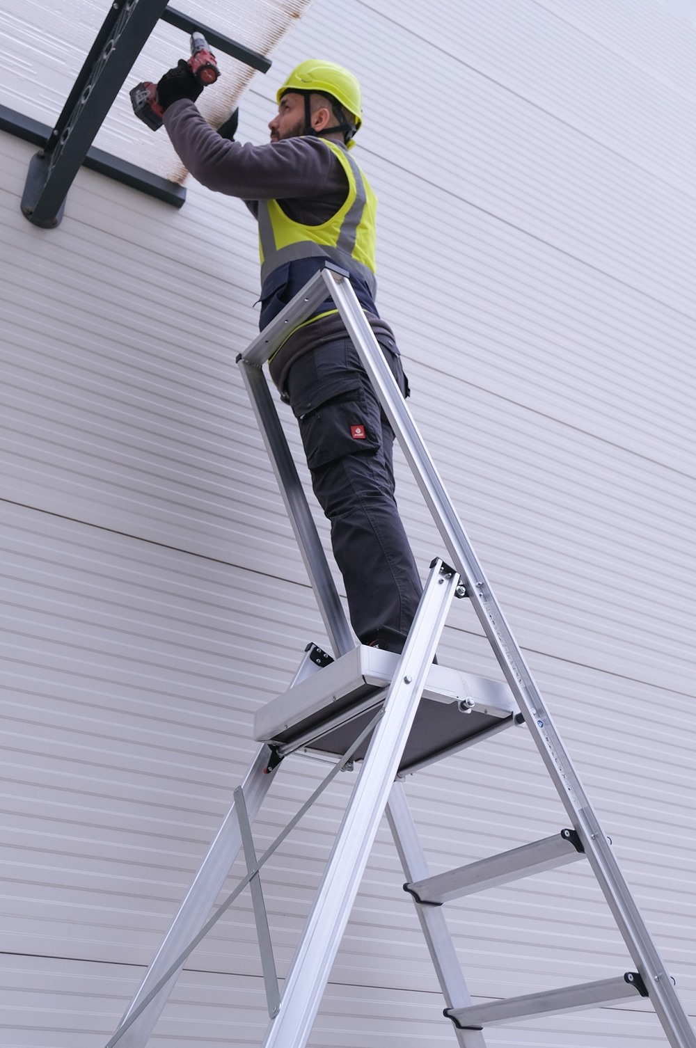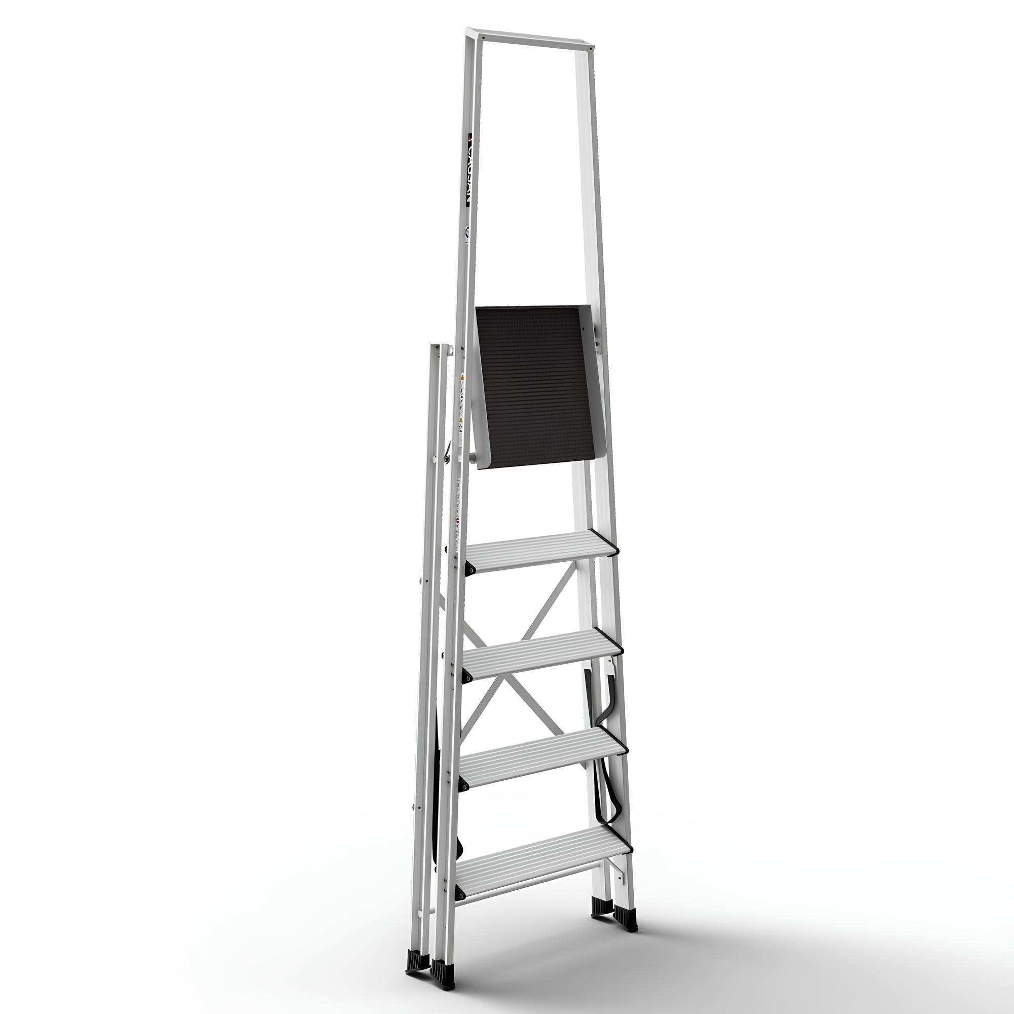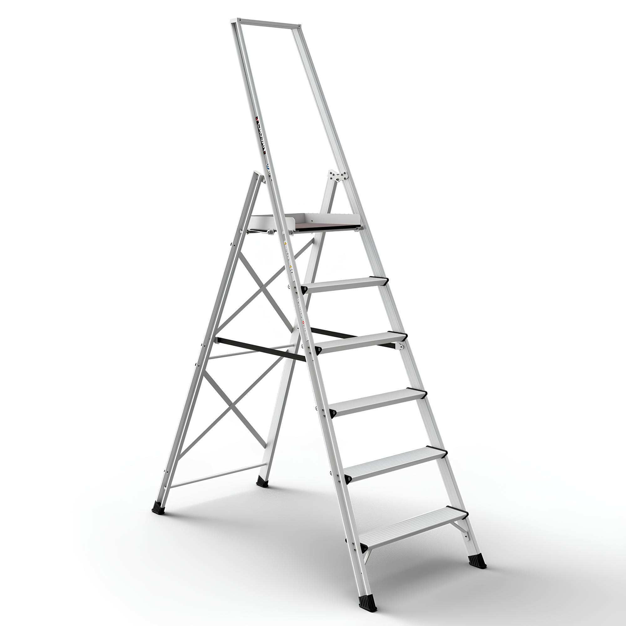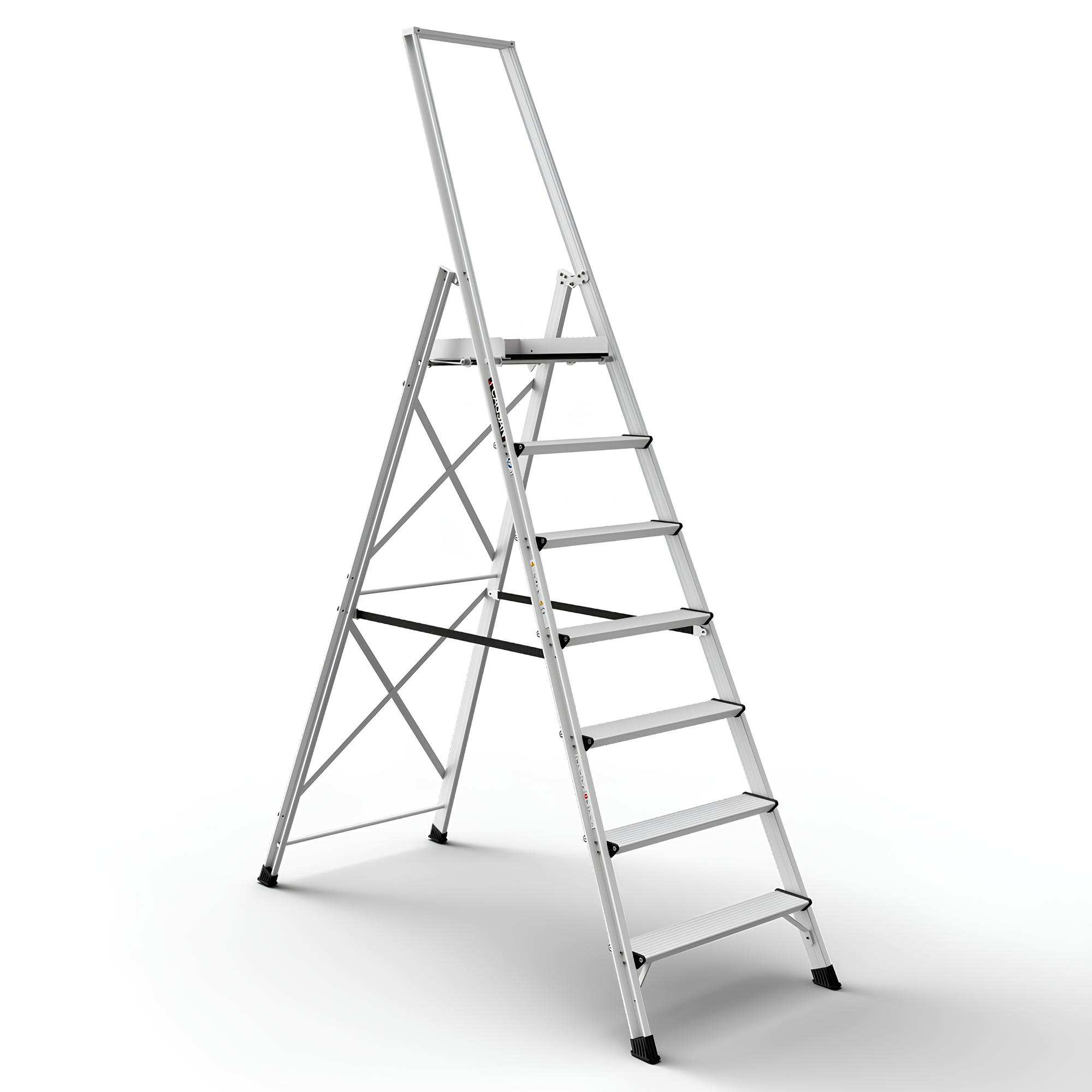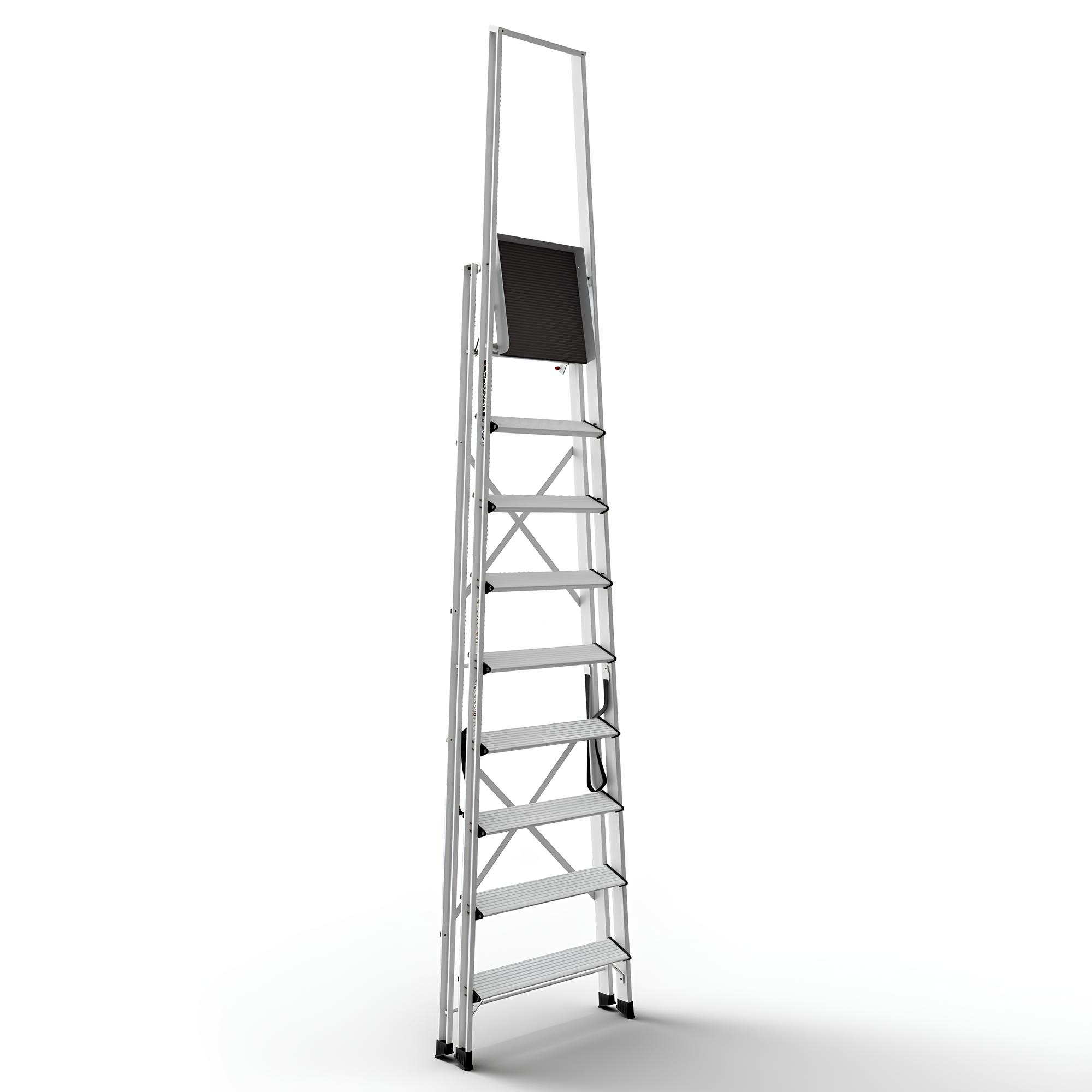 Η δομή αλουμινίου υψηλής ποιότητας παρέχει αντοχή σε έντονη καθημερινή χρήση. Η ενισχυμένη γεωμετρία πλαισίου αυξάνει την ακαμψία και τη συνολική σταθερότητα της σκάλας.