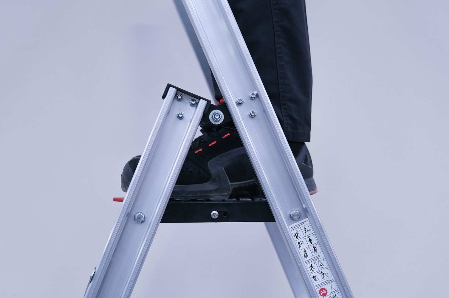 Τα σκαλοπάτια διαθέτουν ειδική επιφάνεια που μειώνει τον κίνδυνο ολίσθησης, ενώ τα πέλματα βάσης προσφέρουν σταθερό κράτημα ακόμη και σε λεία ή βιομηχανικά δάπεδα.