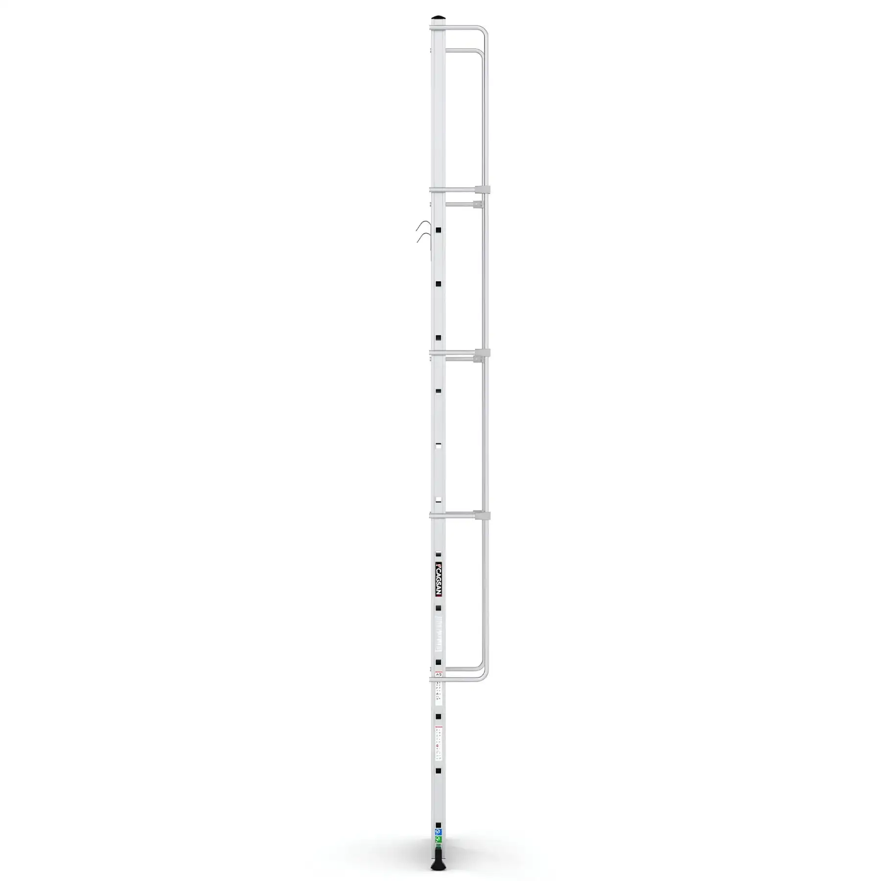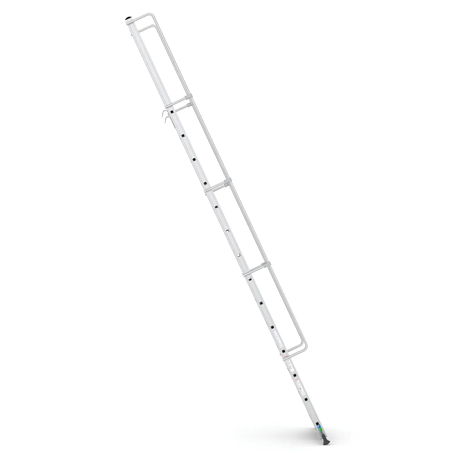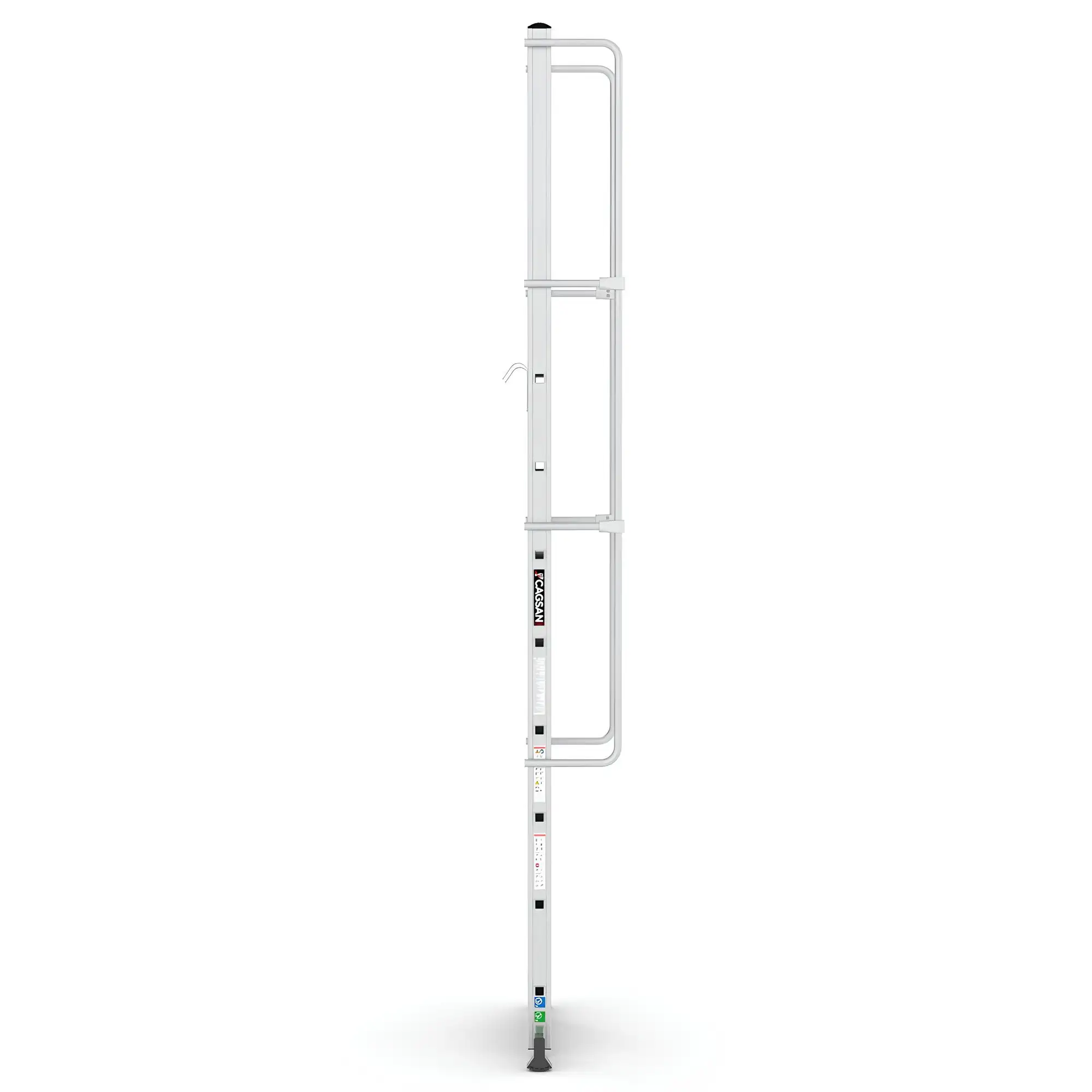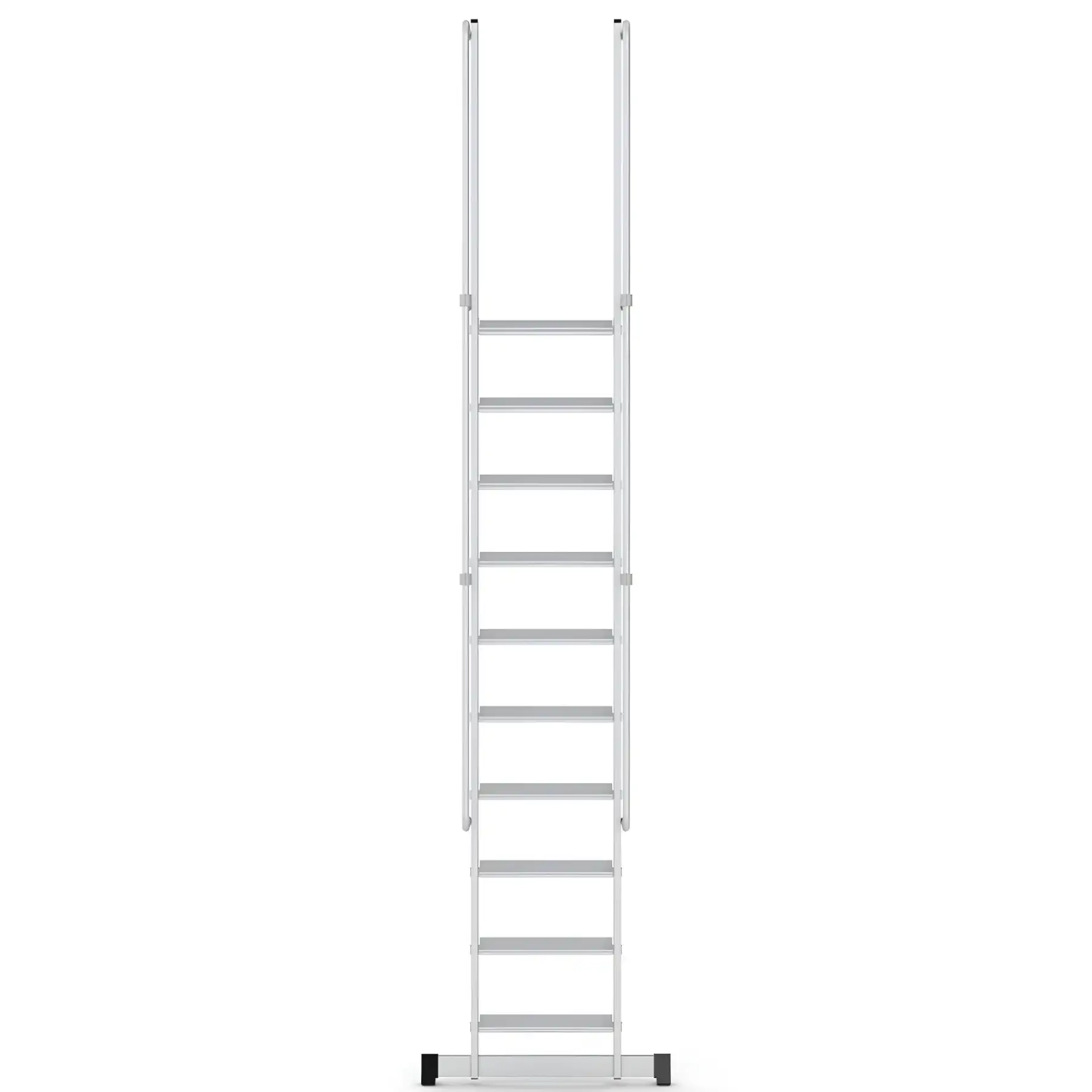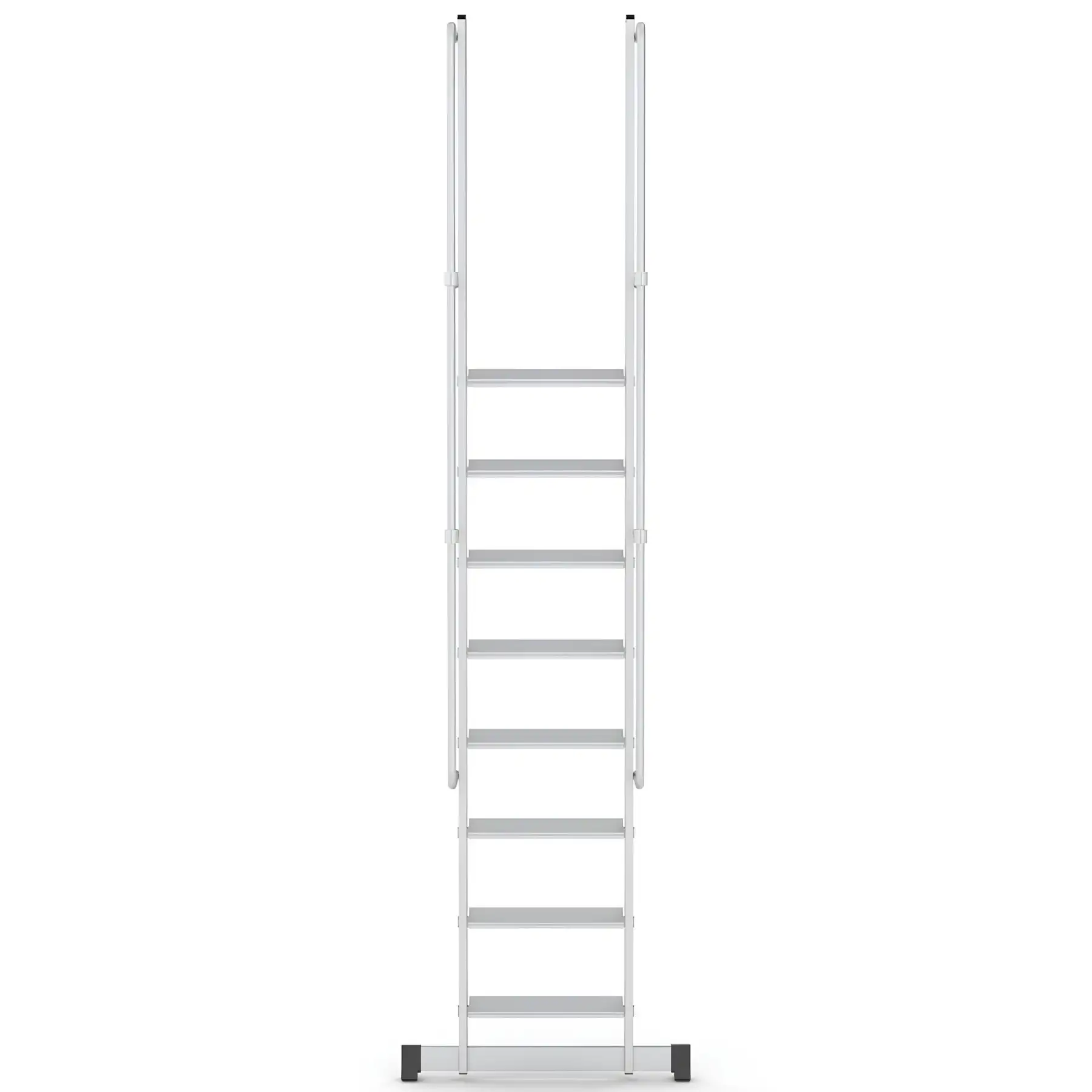 Το σύστημα στερέωσης με γάντζο επιτρέπει τη σταθερή τοποθέτηση της σκάλας επάνω σε δομές ή ράφια, εξασφαλίζοντας μέγιστη σταθερότητα κατά τη χρήση. Με αυτόν τον τρόπο αποτελεί ιδανική λύση για αποθήκες, βιομηχανικές εγκαταστάσεις, χώρους logistics, συνεργεία και τεχνικές εργασίες.