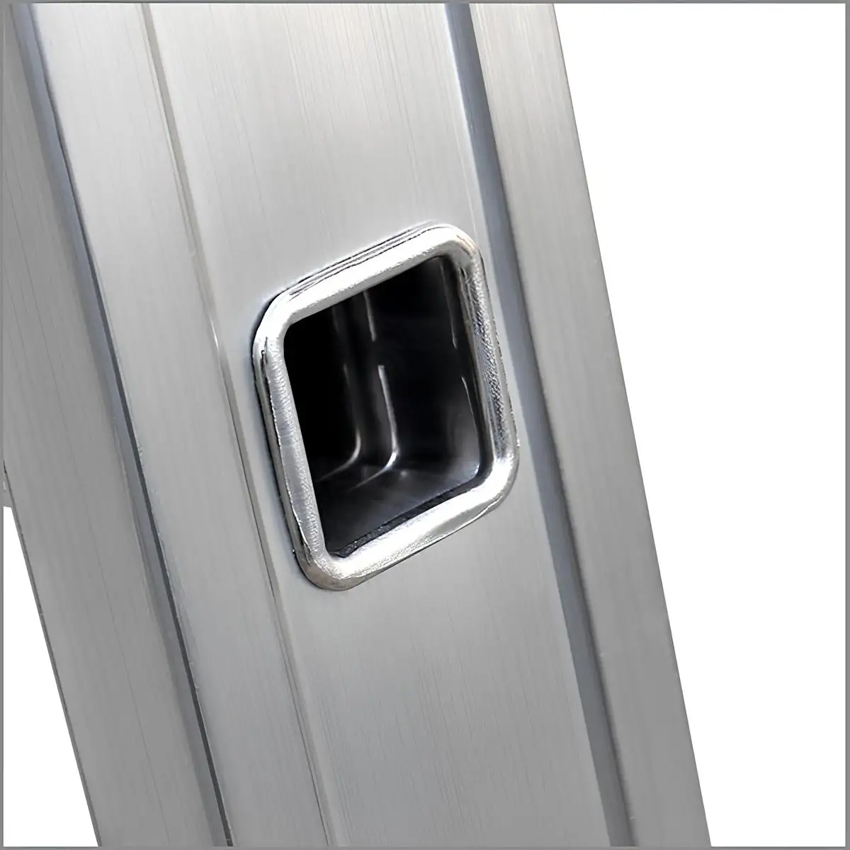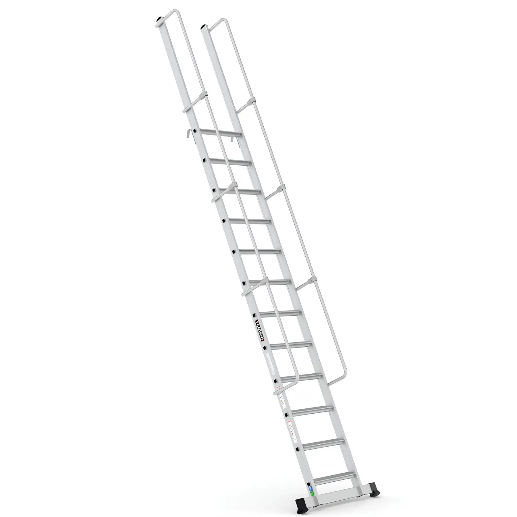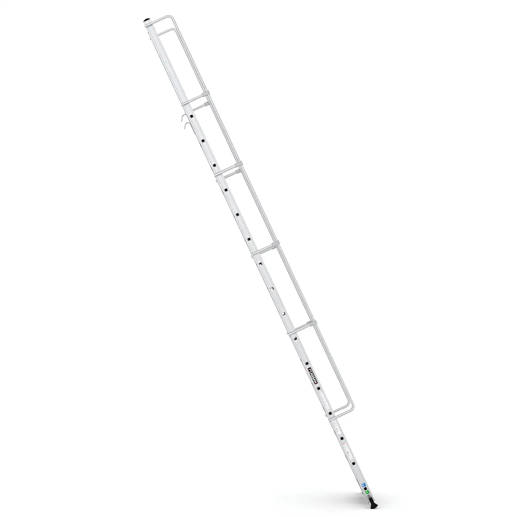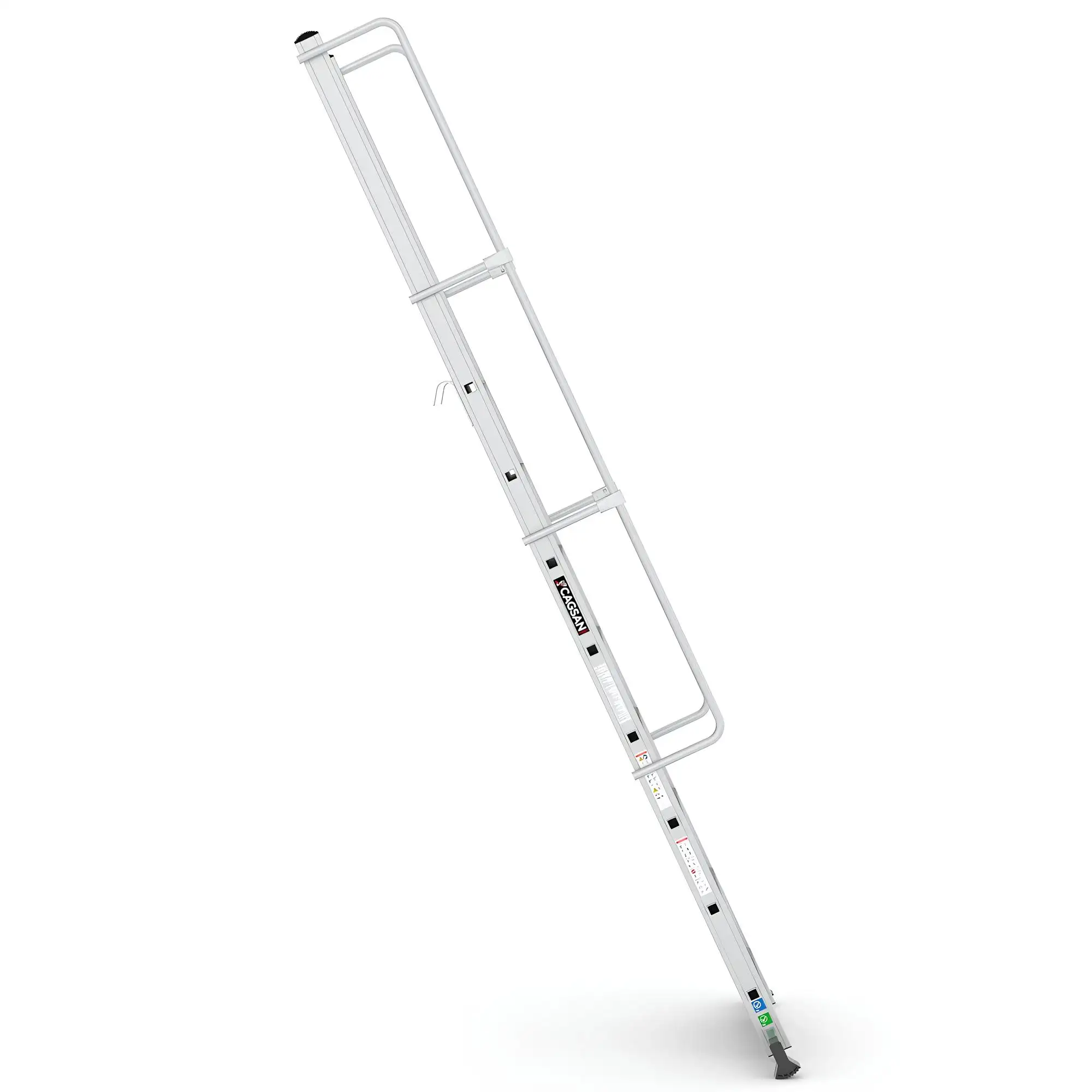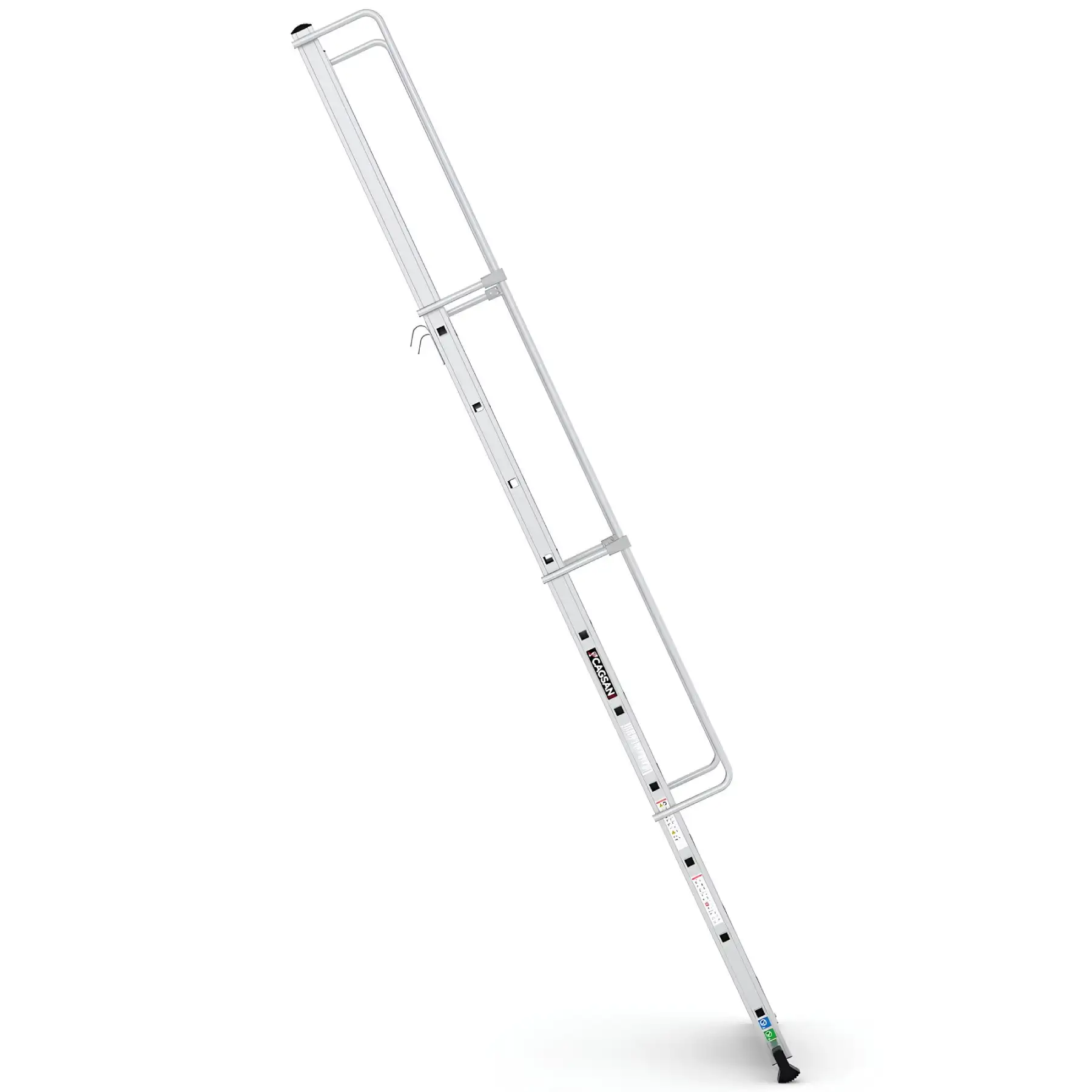 Το σύστημα στερέωσης με γάντζο επιτρέπει τη σταθερή τοποθέτηση της σκάλας επάνω σε δομές ή ράφια, εξασφαλίζοντας μέγιστη σταθερότητα κατά τη χρήση. Με αυτόν τον τρόπο αποτελεί ιδανική λύση για αποθήκες, βιομηχανικές εγκαταστάσεις, χώρους logistics, συνεργεία και τεχνικές εργασίες.