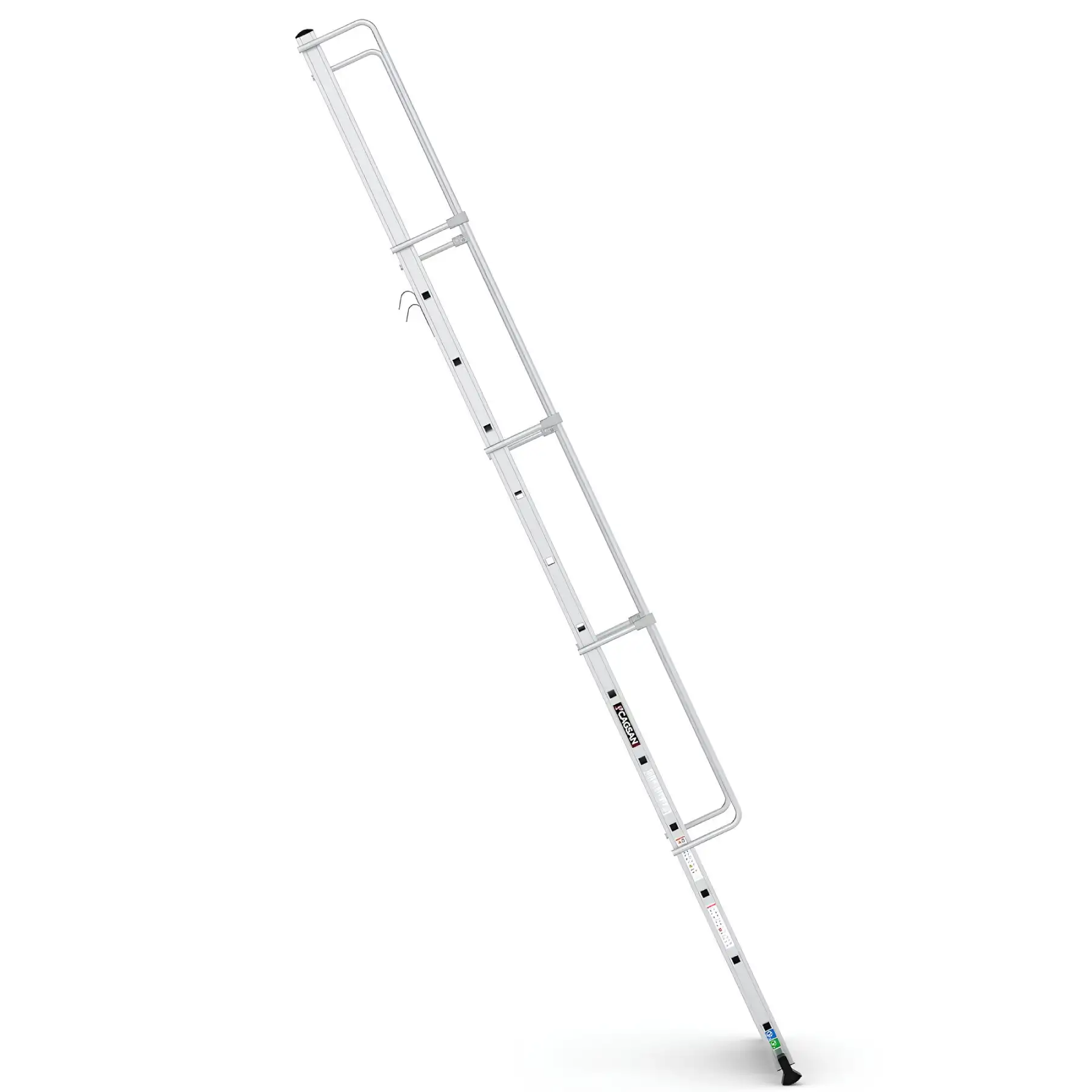 Ο γάντζος επιτρέπει τη σταθερή στερέωση της σκάλας σε κατασκευές, ράφια ή μεταλλικές δομές, αποτρέποντας ανεπιθύμητη μετακίνηση.