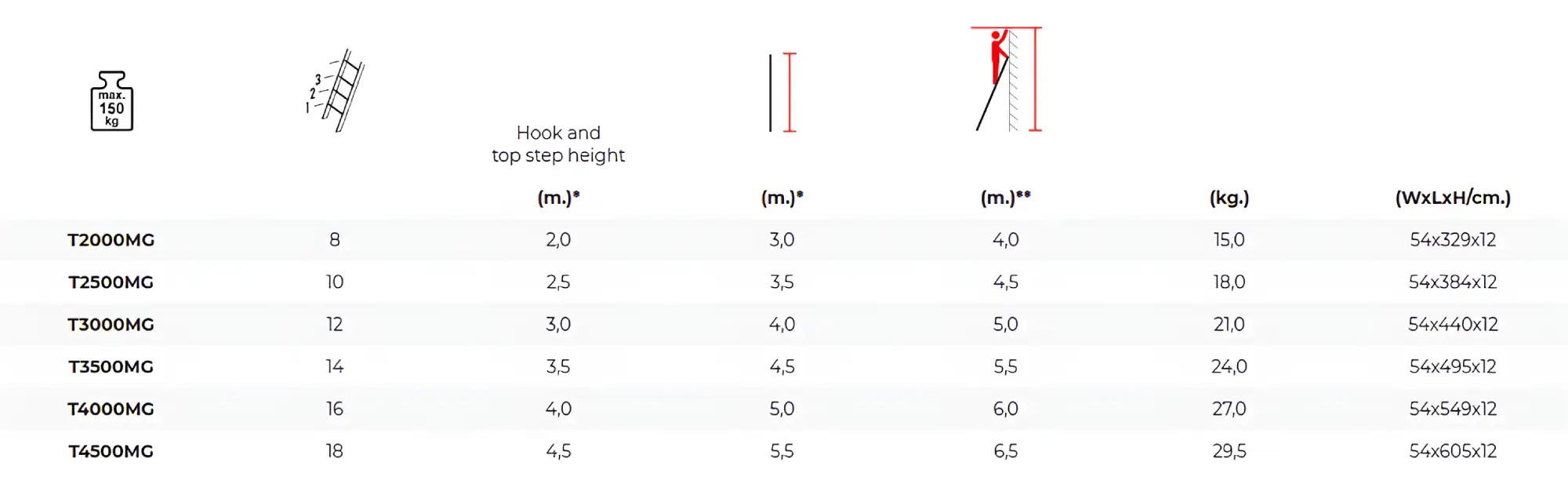 Η σκάλα επιτρέπει ασφαλή πρόσβαση σε ύψη εργασίας έως περίπου 6 μέτρα, ανάλογα με το μοντέλο και το ύψος του χρήστη.