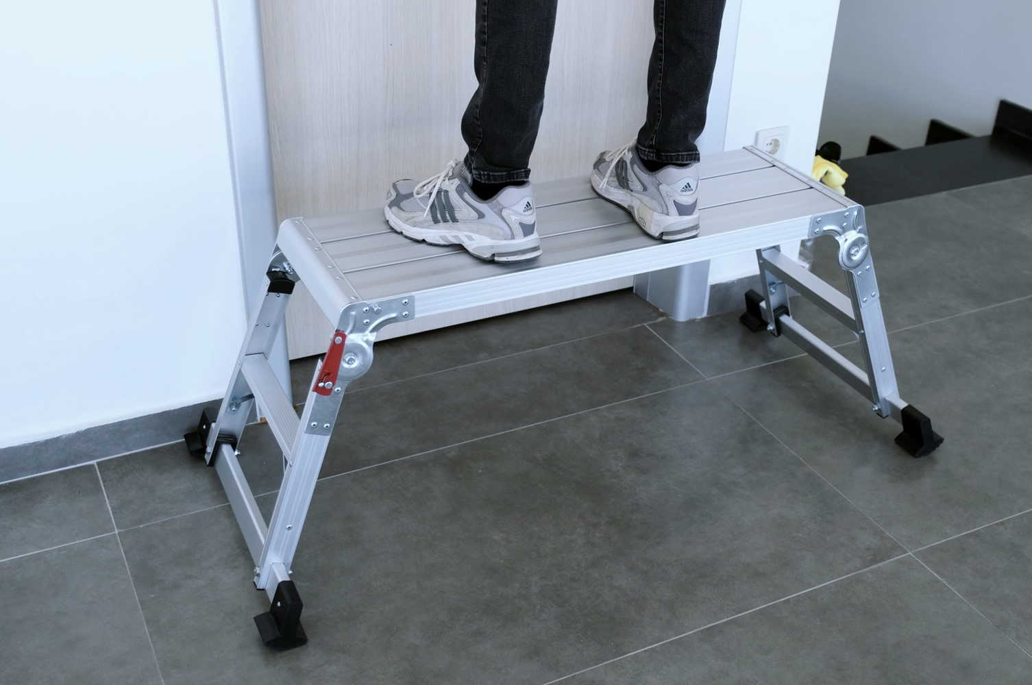 Χάρη στους αντιολισθητικούς ελαστικούς τάκους και τους μηχανισμούς ασφαλείας στις αρθρώσεις, το PONTE προσφέρει σίγουρο και σταθερό πάτημα σε κάθε επιφάνεια. Με μέγιστη φέρουσα ικανότητα 150 κιλών, αποτελεί αξιόπιστη λύση για κάθε τύπο εργασίας. Πιστοποιημένο κατά TÜV Rheinland, συνδυάζει ποιότητα, ασφάλεια και ευκολία χρήσης σε ένα προϊόν υψηλής πρακτικής αξίας.