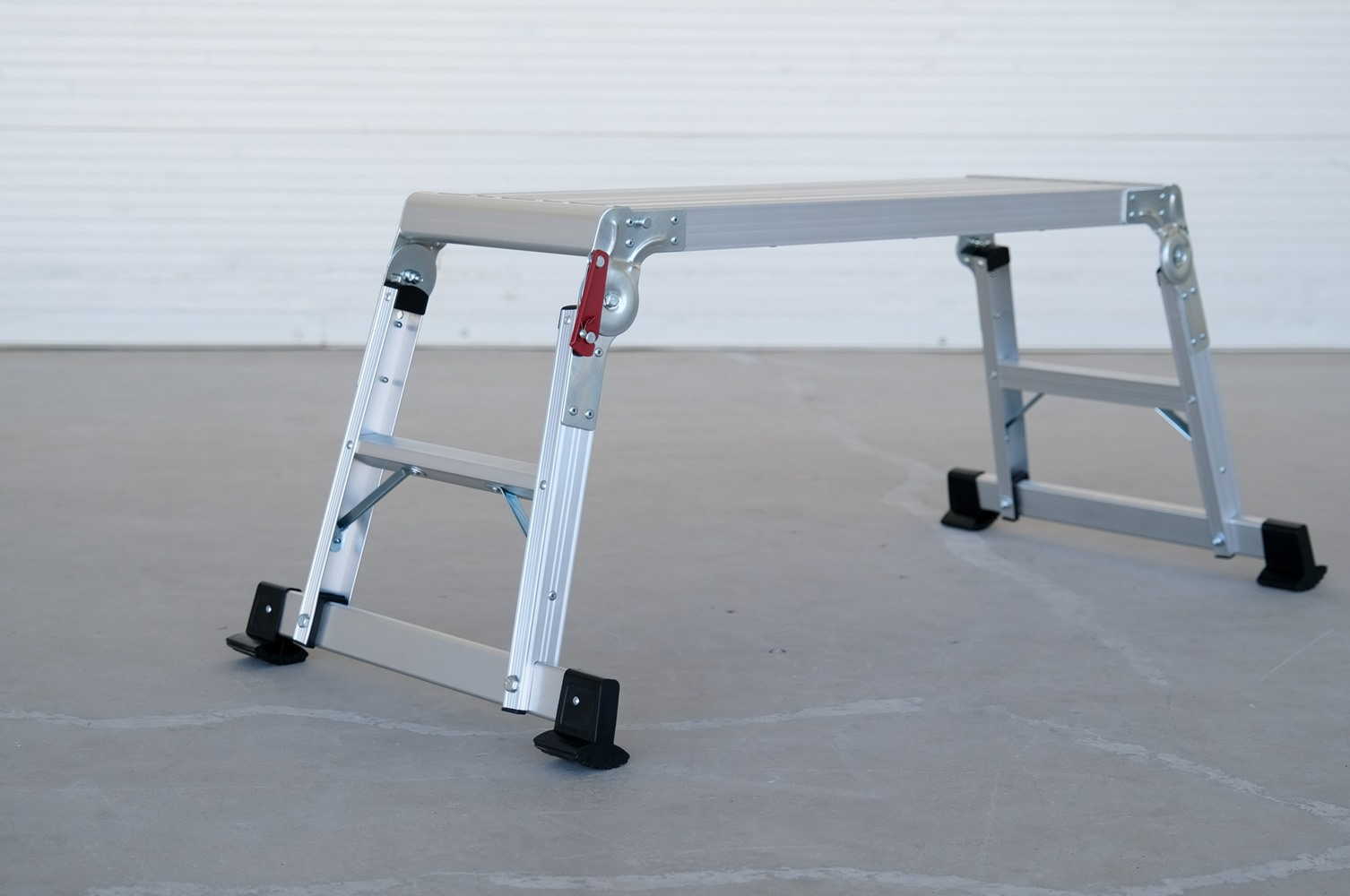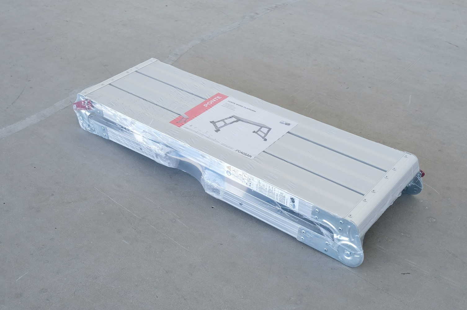 Η PONTE είναι μια πτυσσόμενη πλατφόρμα εργασίας από αλουμίνιο με αντιολισθητική επιφάνεια, ανθεκτική κατασκευή και φέρουσα ικανότητα 150 kg, ιδανική για εργασίες συντήρησης, βαφής και καθαρισμού σε οικιακούς και επαγγελματικούς χώρους.